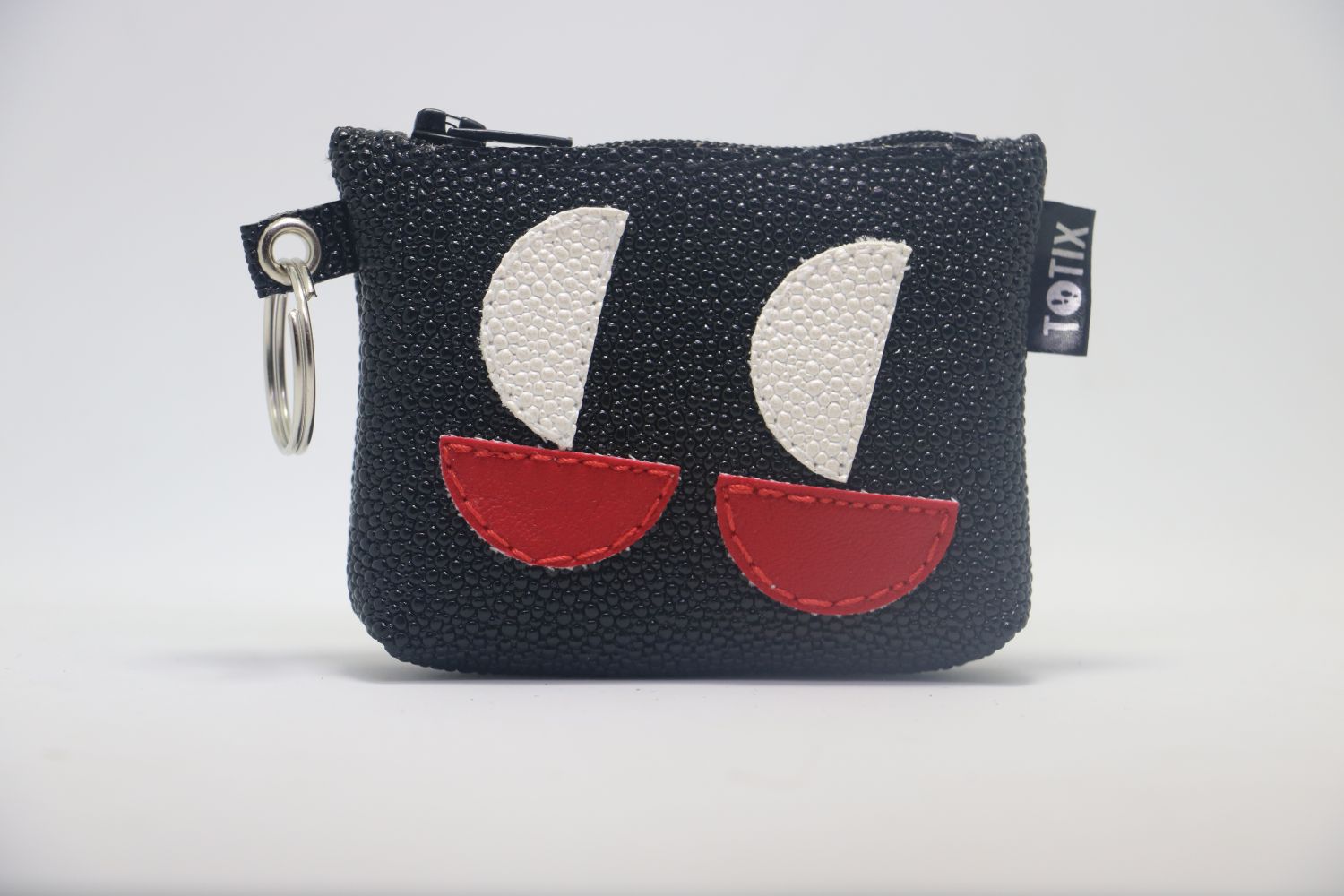 The unique TOTIX HANDMADE coinholder is made of quality eco leather, with our creative design. It can be used for coins and as a key ring. Dimensions are 9cm x 6.5cm.